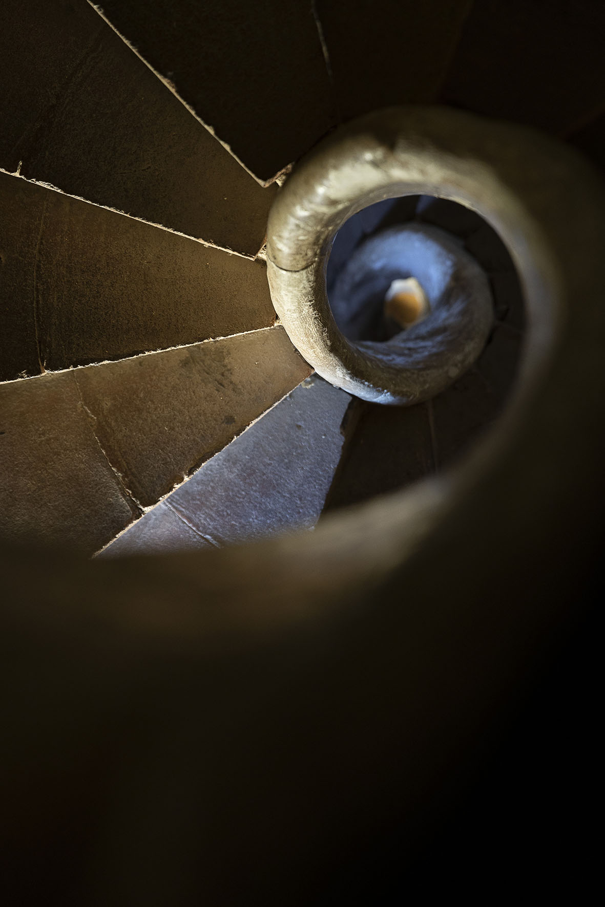 Fumera del Molí de la Vila, a la vora del passeig de la Boca de la Mina de Reus (esquerra) i escales de l’interior del campanar de l’església Prioral de Reus, que per la seva forma recorden les de les torres de la Sagrada Família (dreta)