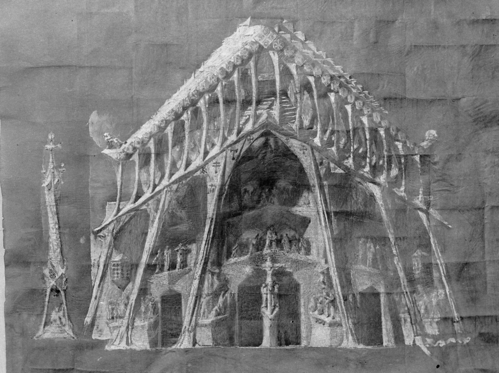 Original drawing of the narthex on the Passion façade, published in El Propagador in 1917. Credit: Antoni Gaudí El Propagador el 1917. Autor: Antoni Gaudí