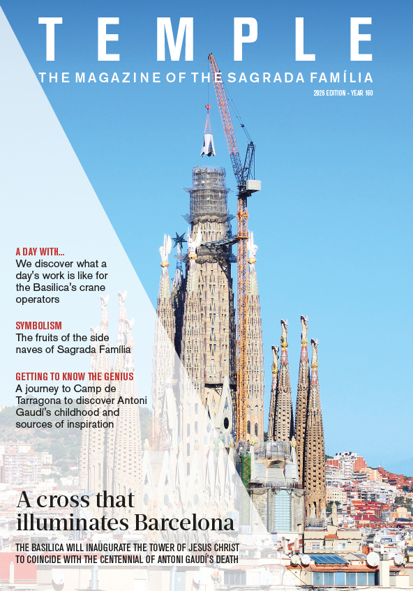 Faithful to this legacy, the current publication of Temple is invitation to closely follow Antoni Gaudí’s project through architecture, history, symbology, and the people who make and have made the dream of a genius come true. The magazine strives to be an informative tool that delves into the past, present and future of the Sagrada Família project as work continues on the final stage of its construction.