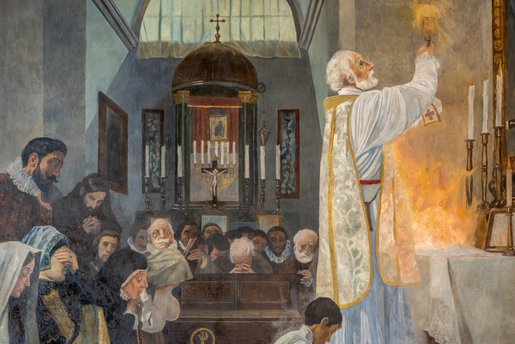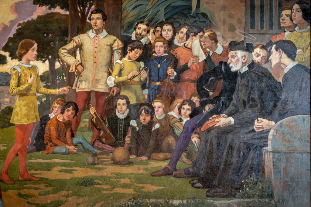 Antoni Gaudí retratat com a Sant Felip Neri per Joan Llimona als quadres que hi ha penjats a l’interior de l’església