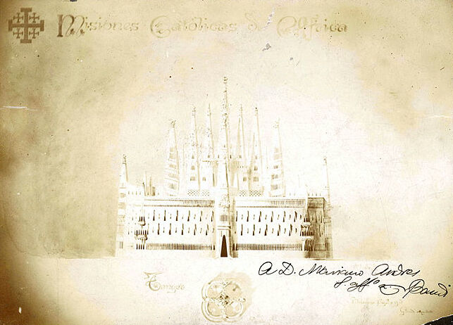 Fotografia del dibuix d’Antoni Gaudí del projecte de les Missions Franciscanes a Tànger