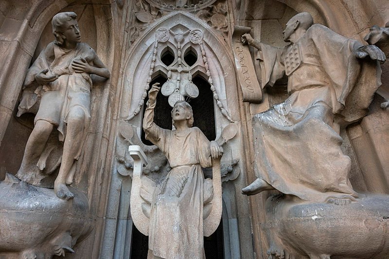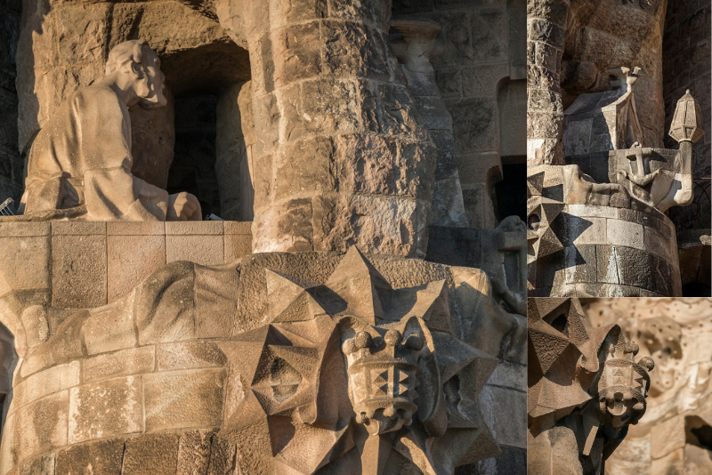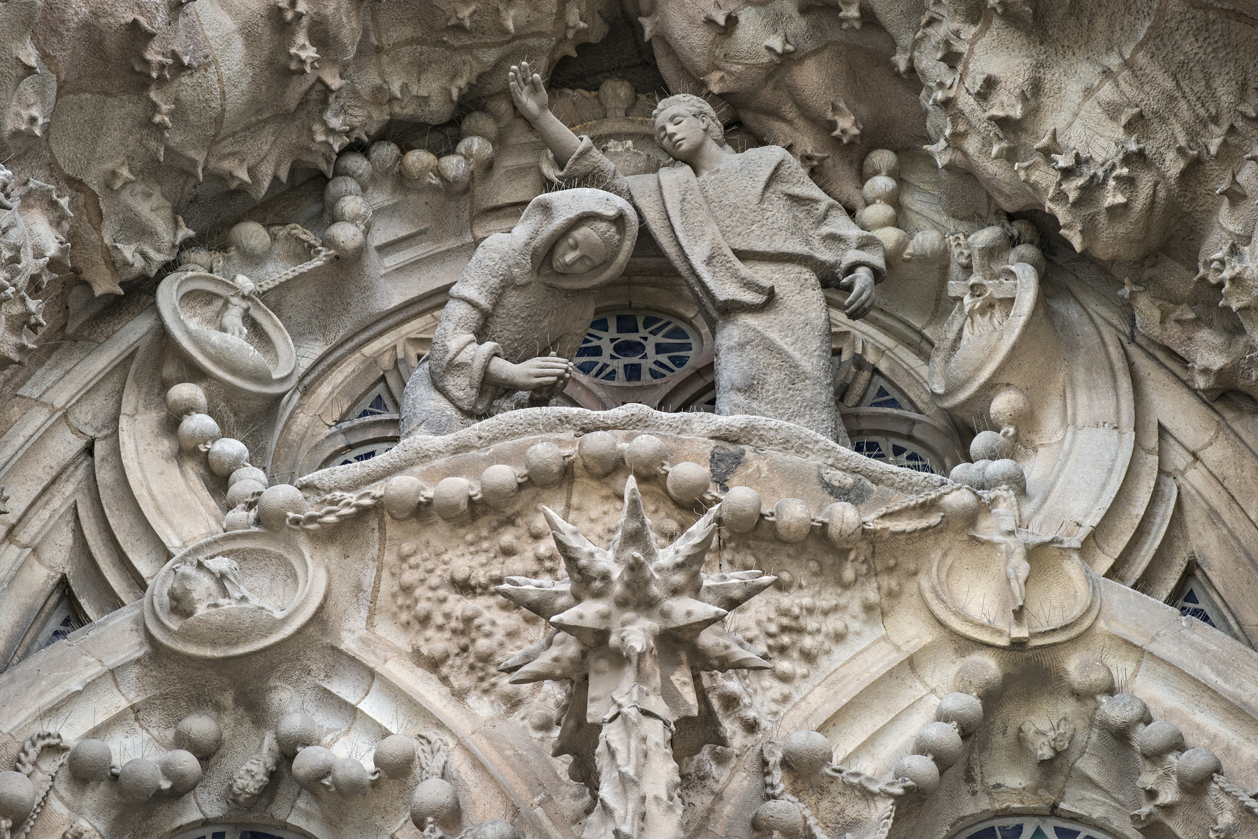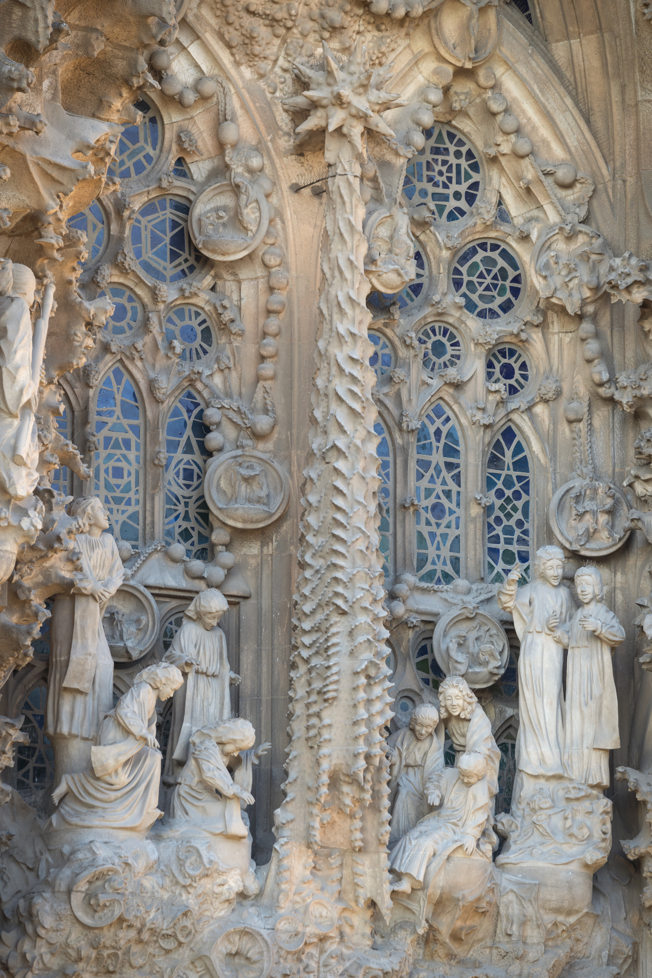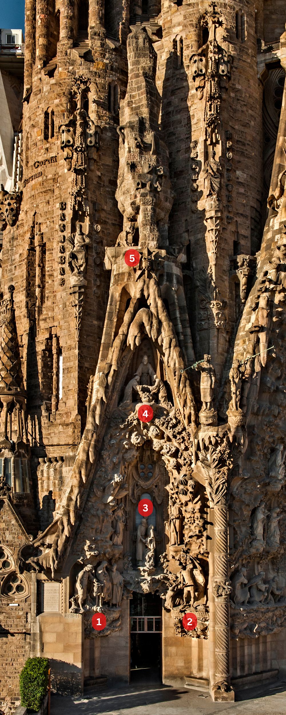 Antoni Gaudí volia que la façana del Naixement de la Sagrada Família fos un cant a la joia de la vida i a la creació divina. És per això que és plena d’animals (gallines, ànecs, insectes, amfibis, ocells diversos…) i elements vegetals (roses, lliris, falgueres, arbres fruiters, palmeres…) que lloen el naixement del Messies i reforcen el significat simbòlic de les escenes que s’hi representen. L’arquitecte associa la vinguda al món de Jesús amb l’esplendor de la natura i l’inici del dia, motiu pel qual situa la façana a llevant (a l’est), per on surt el sol, que a primera hora del matí il·lumina les escultures del conjunt. En aquest article veiem quines són.