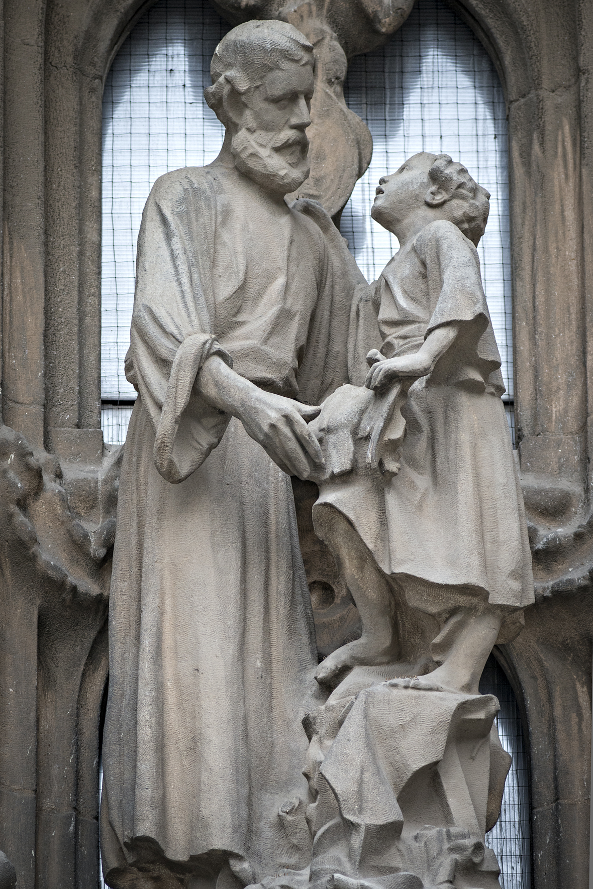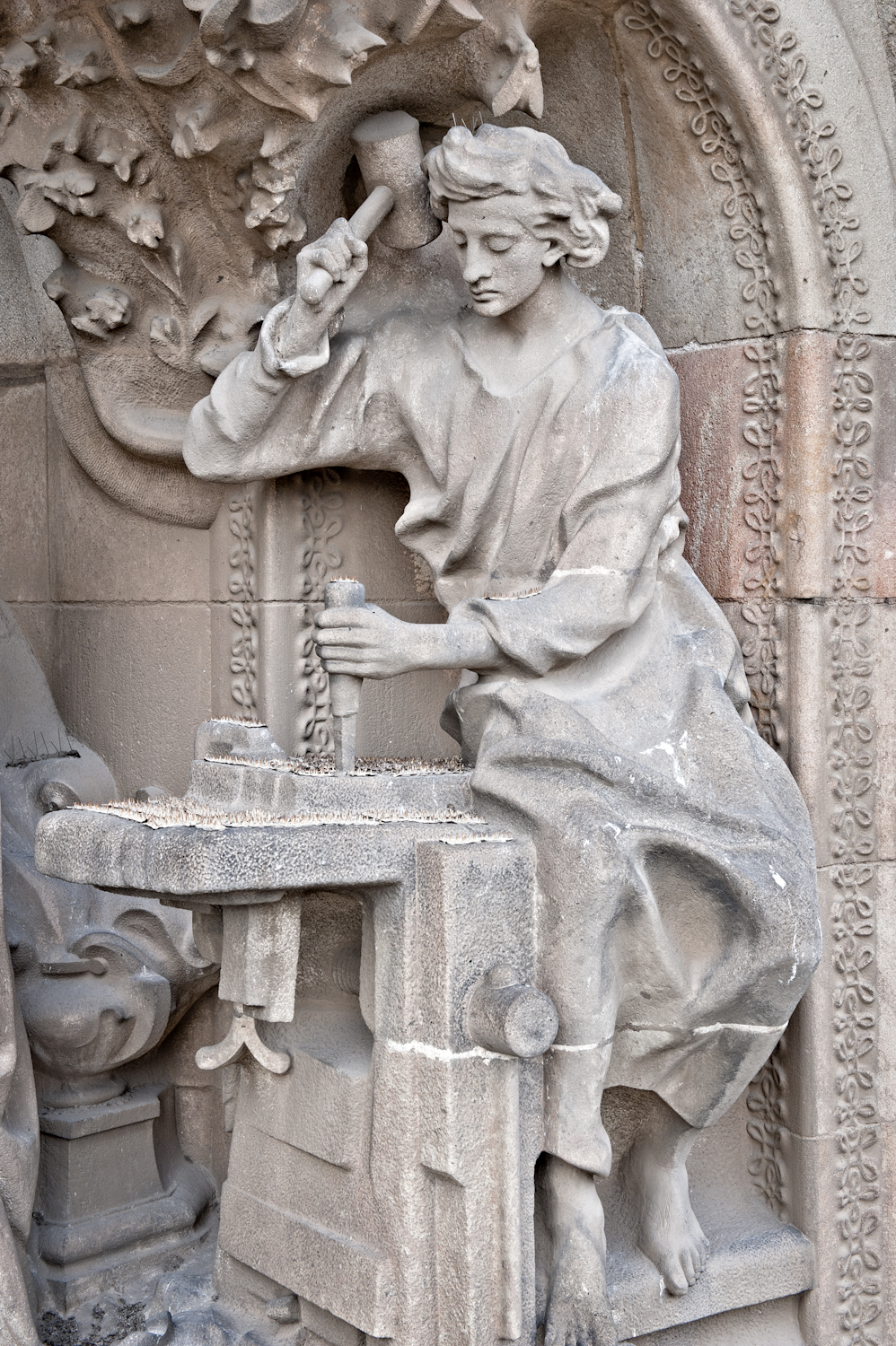 En aquesta escultura apareix Jesús de jove treballant al taller de fusteria del seu pare.
