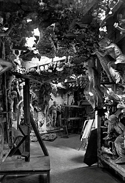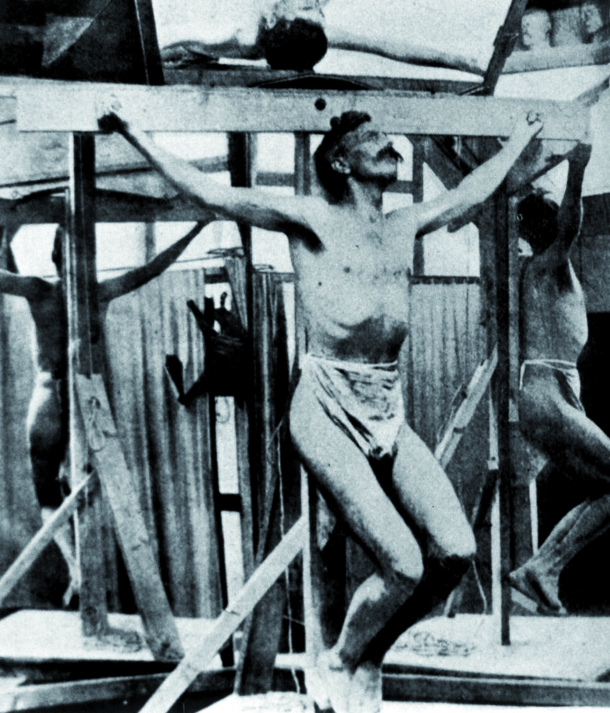 Mariano Barceló fent de model de Crist crucificat a l’obrador d’Antoni Gaudí